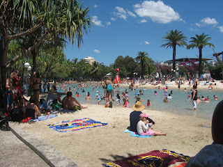 In Southbank, there is a huge outdoor swimming area. It's a chlorine pool but it's surrounded by sand, just like a beach, with palm trees and other cool trees. It's free and a great way to cool off, right in the city. The beaches require a car, as they are about a 30 minute drive away. We're going to rent a car again soon and head to another one, but in the meantime, our swim here was quite nice and refreshing, especially considering the temps today were high! It was a warm one!! I liked the feeling of this part of the city...almost felt like you were on a resort. Just beside the pool, there was a cool outdoor market, restaurants, cafes, shopping, a movie theatre...you name it. Definitely could spend a full day here and not get bored!